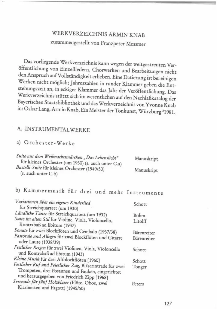 Die 110. Wiederkehr von Armin Knabs Geburtstag 1991 war ein Anlass, des Meisters in dieser Monographien-Reihe zu gedenken. Leider wissen heute immer noch zu wenig Chöre und Gesangssolisten über das breite vokale Schaffen Armin Knabs Bescheid.